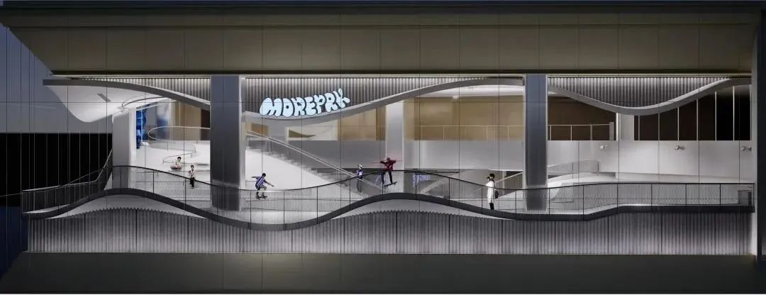 在将近20米的高空打造了一片云端滑板乐园,起伏的弧面带来更多活动的可能性。