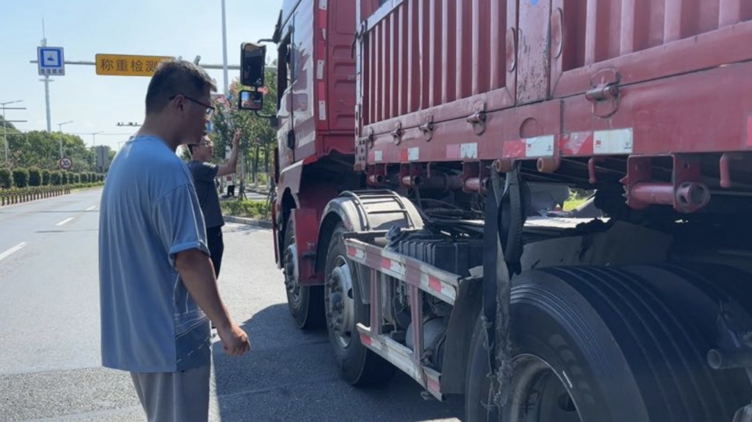 8月2日上午9点,在新联检查站,区环境监测站的工作人员对入沪柴油货车开展了现场检查。区环境监测站生态监测二科科长陈斌说:“我们先目测柴油车尾气有没有产生黑烟,有黑烟我们会用仪器检测尾气。”