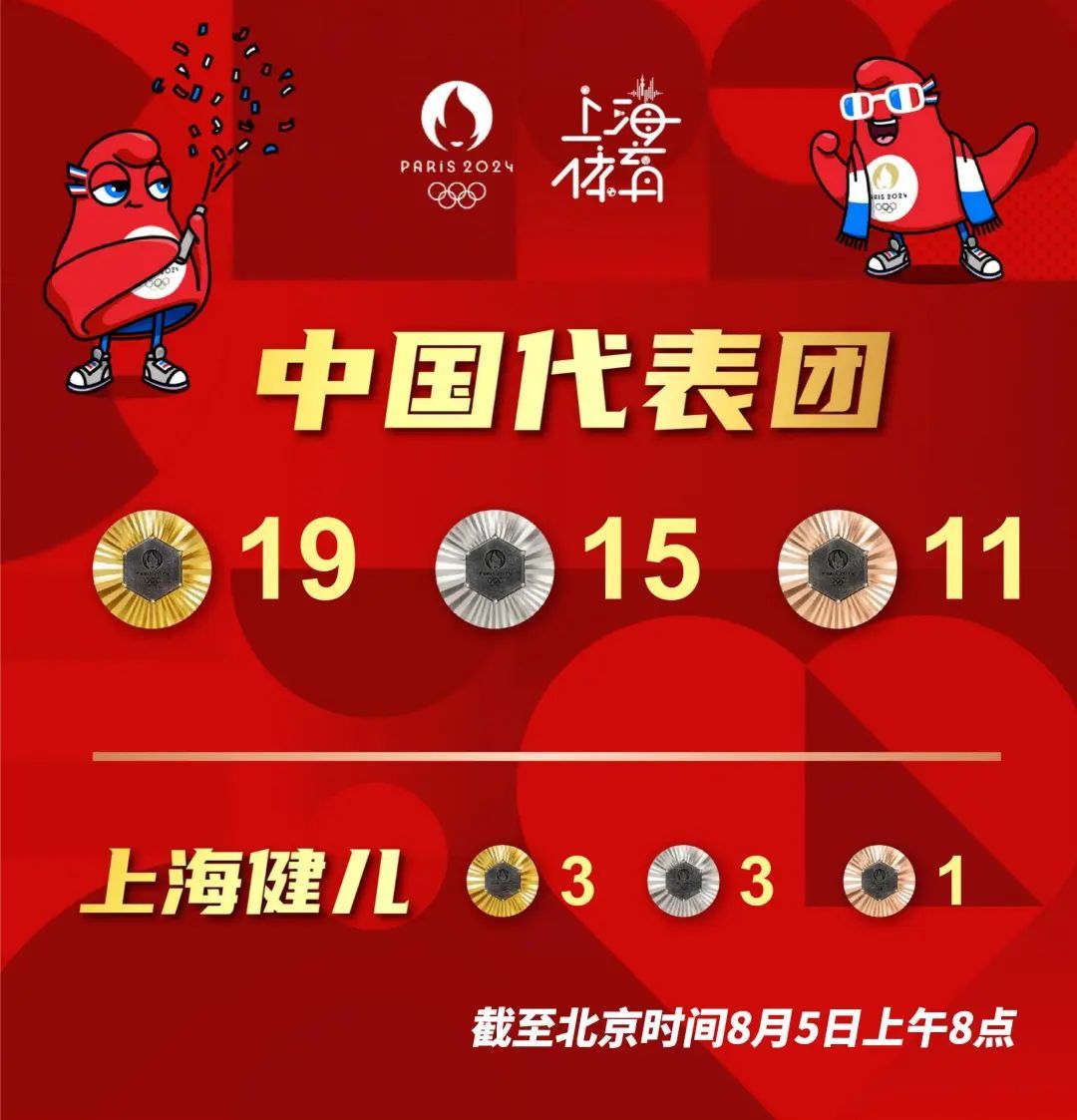 巴黎时间8月4日,中国体育代表团单日再添3金3银2铜。游泳比赛收官日,中国队再掀高潮——在男子4x100米混合泳接力决赛中打破美国队长达40年的垄断,首次站上最高领奖台(相关链接)。中国游泳队以2金3银7铜共12枚奖牌,两次打破世界纪录、创造一项亚洲纪录的优异表现结束巴黎征程。