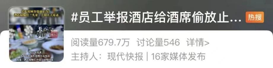 近日,有媒体报道一酒店的厨师为预防顾客腹泻在菜肴里添加庆大霉素一案。这件事也迅速登上了微博热搜。