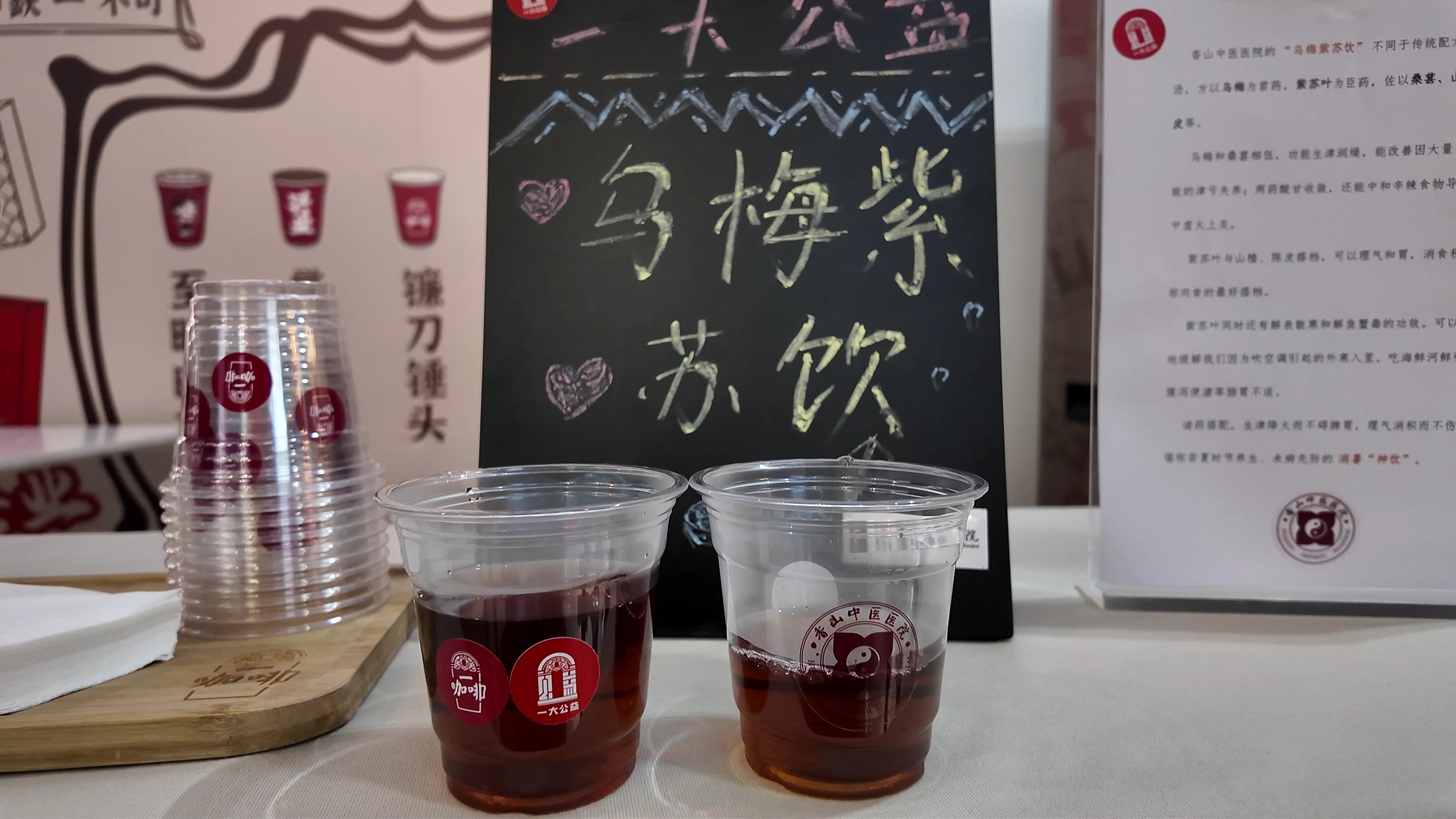 活动现场,中共一大纪念馆和香山中医医院的党员志愿者们身着志愿服,忙碌而有序地准备着精心调制的“乌梅紫苏饮”。黄浦区香山中医医院党总支书记、院长柴丽萍介绍到:“这款饮品由黄浦区香山中医医院的专家团队根据夏季养生理念特别配制,乌梅生津止渴,紫苏解表散寒,两者结合,既能消暑解渴,又能生津降火,非常适合夏季饮用。”