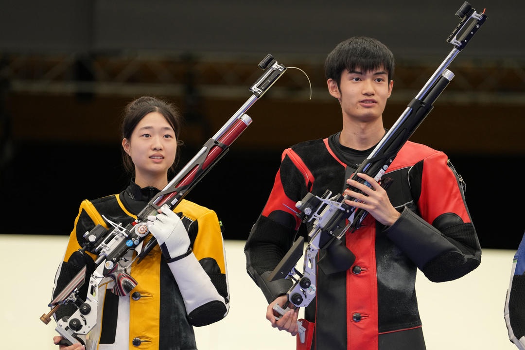 射击10米气步枪混合团体,盛李豪、黄雨婷在比赛中表现出了高超的竞技水平和良好的心理素质,在决赛最后几枪被对手连续追赶的情况下,展现大将风范,实现稳定发挥,为代表团夺得首金,传承了射击项目的“首金精神”。