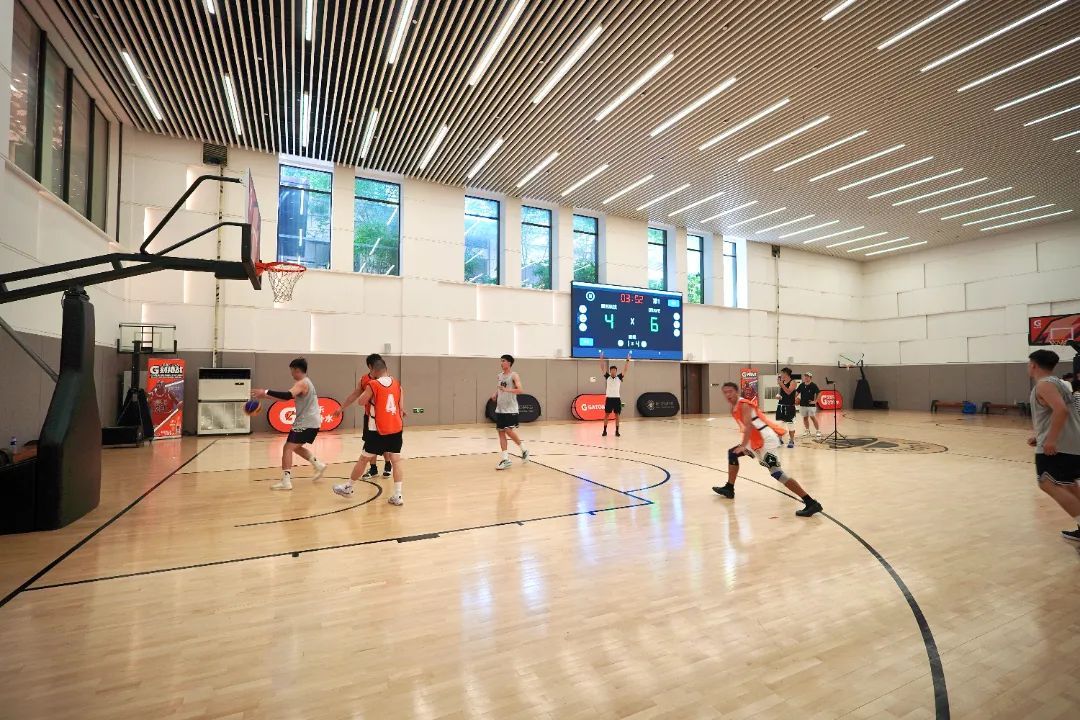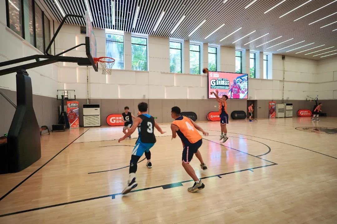 跳跃、防守、进攻,比分不断迫近、反超、取胜。比赛现场,只见球员们身穿印有队名的球服,奋力拼抢,创造了无数精彩的场面。