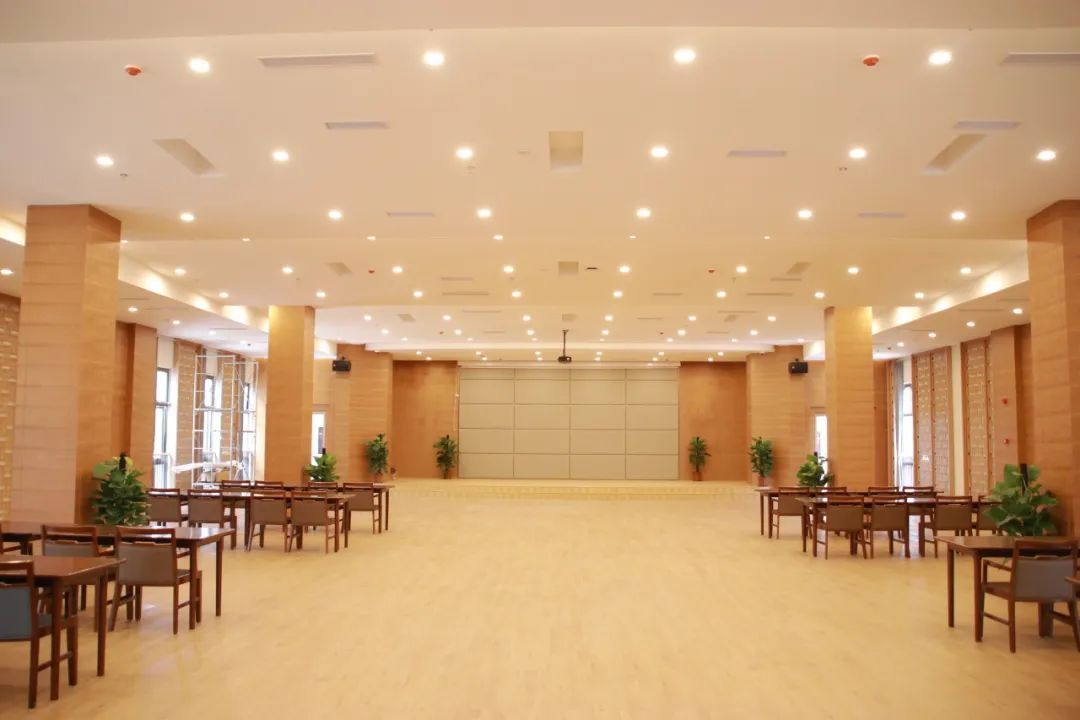 养老院采用适老化无障碍及专业空间设计,全力为老年人打造宜居健康的生活环境。医疗诊室、药房、活动室、老年学习区、餐饮和园艺等配套齐全,影院、KTV、烘焙房、咖啡吧、儿童乐园等设施丰富,旨在为长者们带来平安快乐、温馨温暖的全新养老体验。