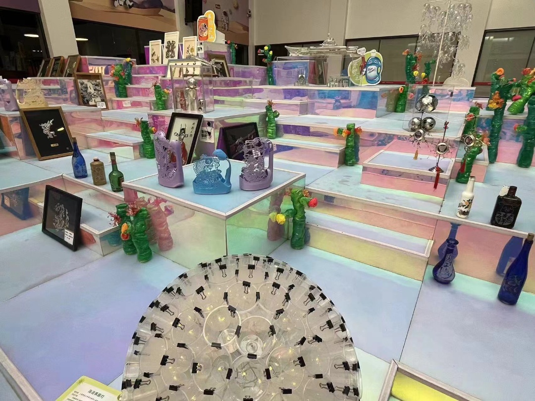 古往今来,园林承载着中国人的“造梦之道”。园林造景艺术源远流长,是中华民族文化的重要组成部分。它不仅是自然景观的再现,更是诗意生活的体现。整个装置艺术的核心是废弃塑料片与塑料瓶的再利用,激发观众对传统与现代融合的深刻思考。