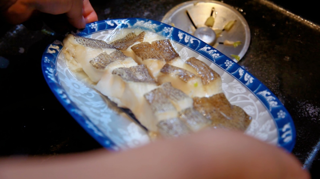 5.将鸦片鱼放入蒸箱,100℃蒸20分钟;