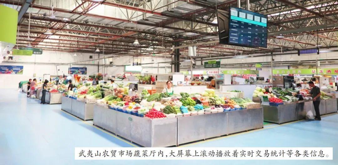 武夷山农贸市场蔬菜厅内,大屏幕上滚动播放着实时交易统计等各类信息。