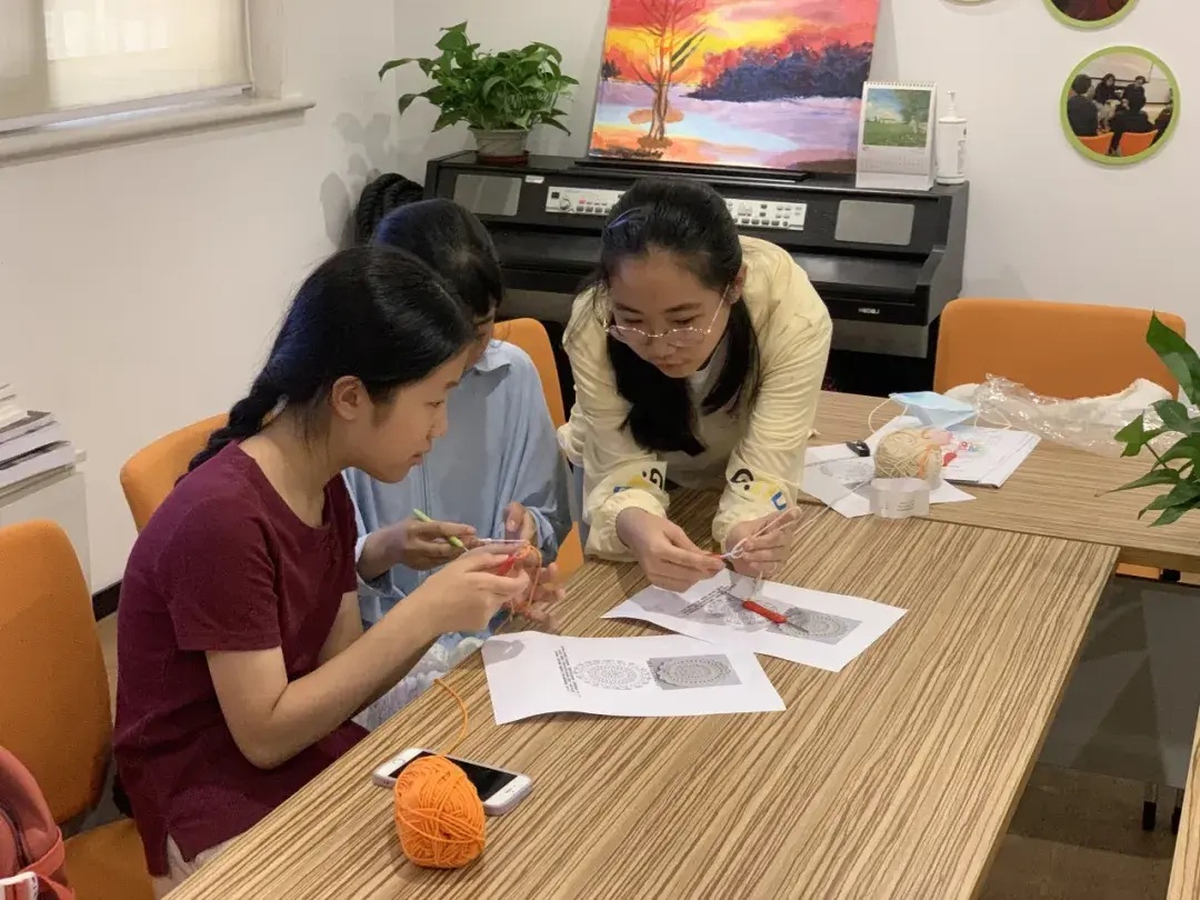“今天的活动真有趣!”“我做的杯垫太漂亮了!”活动最后,大家纷纷展示出自己的作品。老师也告诉孩子们,钩针是一门艺术,可以用来创作出多样的作品,从简单的杯垫到中等难度的水杯套等,都可以用钩针技法实现创作。