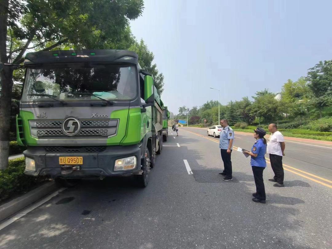 在检查验收车辆的同时,执法人员向运输企业同步宣传讲解法律法规,使相关企业进一步压实源头规范运营重要性和自觉性,在日常运输建筑垃圾过程中,全程密闭运输,不撒漏、不超载超限。