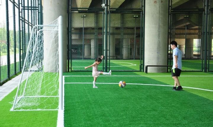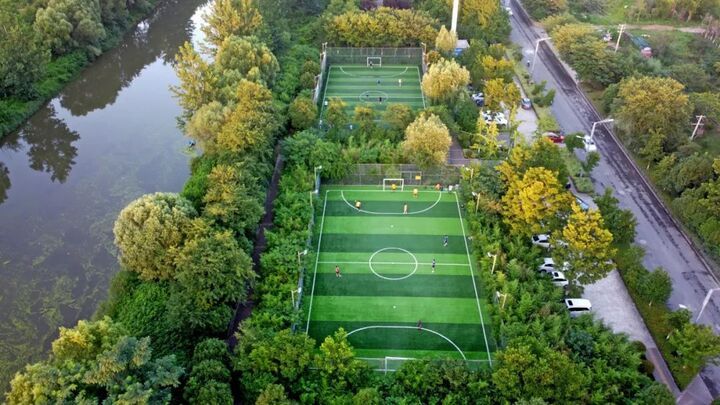 小空间也能塞下绿茵场,家门口也能畅快踢球。一些口袋公园、社区公园里也藏着非标足球场,比如,无锡惠山区钱巷社区足球场、苏州金鸡湖高尔夫花园社区足球场、无锡厚桥街道足球场、苏州新沧花园社区足球场、南京龙西社区足球场、宿迁通湖大道球场、连云港东海县滨河路生态足球场。