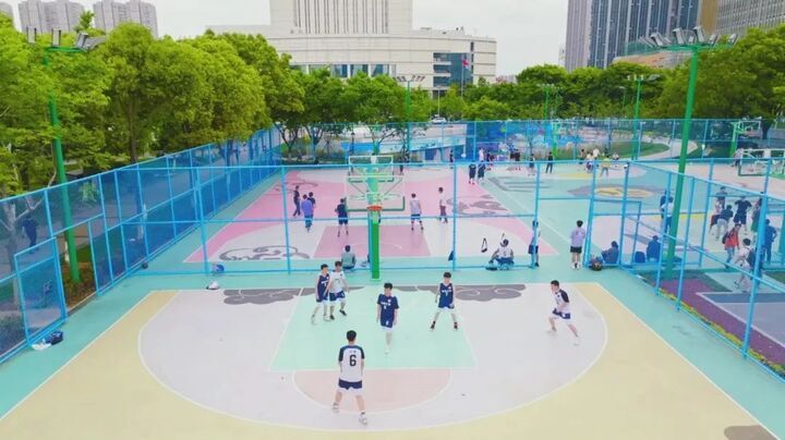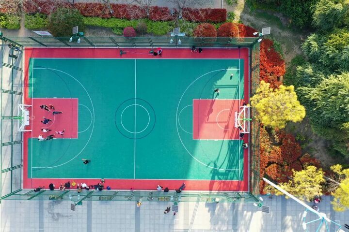 居民家门口的社区公园、口袋公园里,也有打球好去处。淮安福州路小游园、南京秦淮新河百里风光带南站段、南京水木秦淮艺术街区、南京竹新路口袋公园、无锡惠山春来广场、常州潮玩公园、连云港昌圩湖体育公园、盐城小洋湾游园、镇江健康路城市公园等地,因地制宜布点篮球场,让市民在家门口释放运动热情。球场上的“动”空间、林荫下的“静”空间,形成一幅生动的城市生活框景。