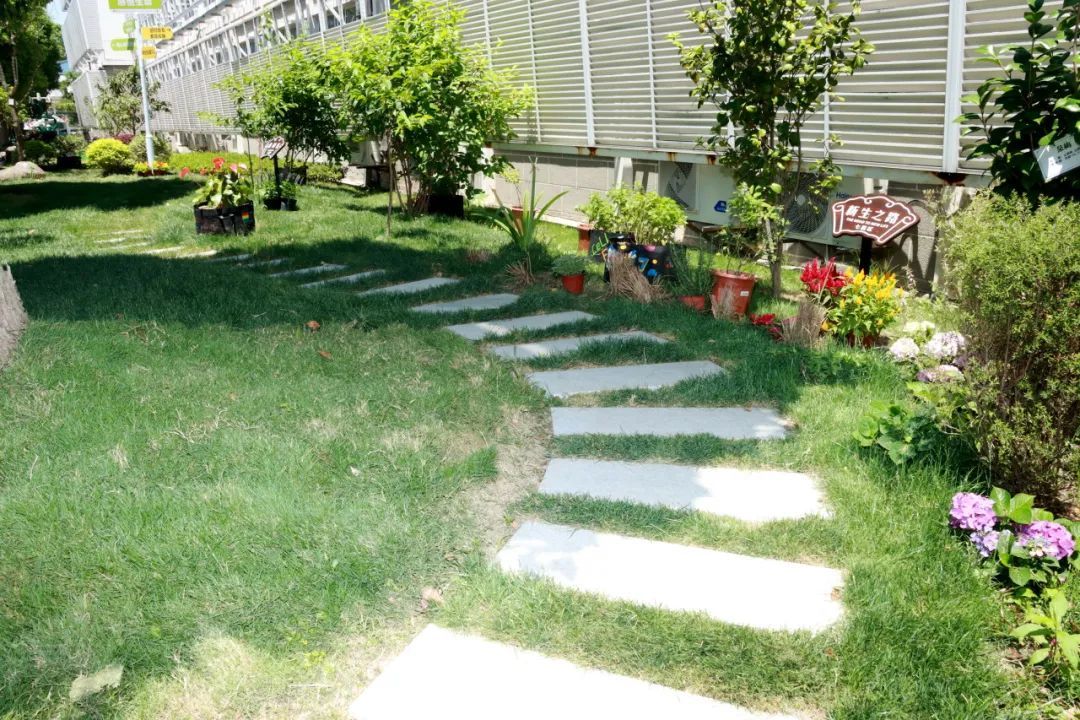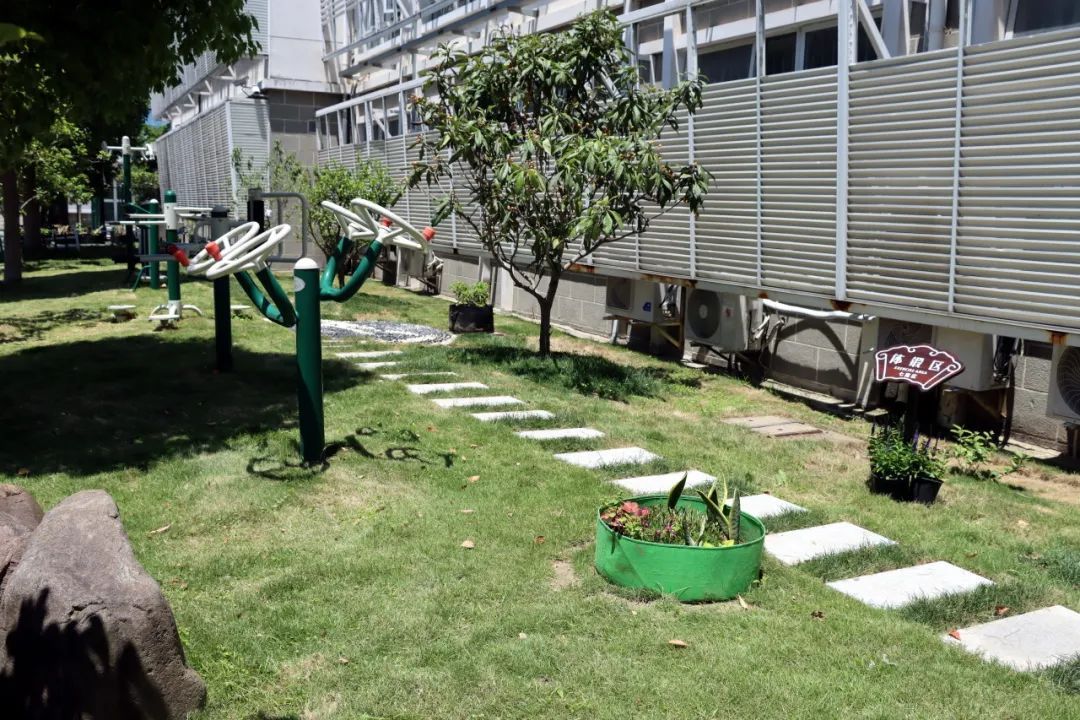 花园中部为“体锻区”,多种健身器材错落分布,一块由鹅卵石铺制、并排列象征着七监区的“七”字形状图案的“石毯”,罪犯通过在赤足摩擦中起到舒筋活络之效,在拉伸旋转中达到强身健体之功,两边以果树相衬,在果香中练习正念矫治的“呼吸吐纳法”,让老病残罪犯能从适当的运动中获得身心的健康发展。