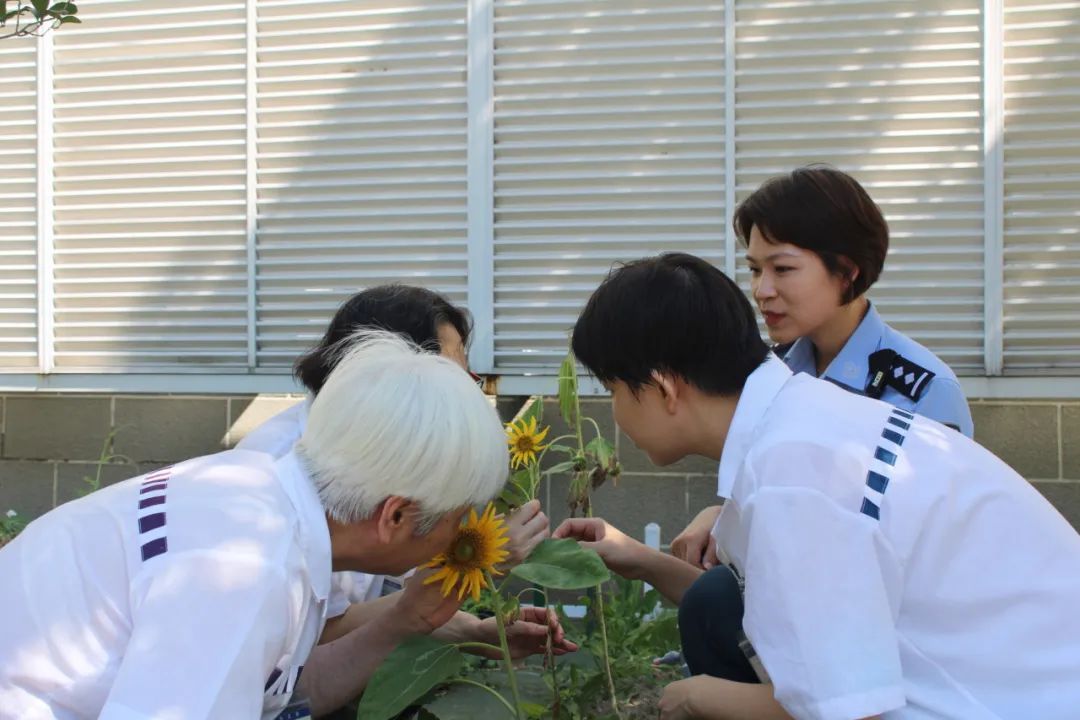 民警组织罪犯通过栽种、观察、发现等方式,感知植物的生命轮回与流转,引导罪犯对生命的思考,解构错误的认知,重塑生命的内涵。天高云淡,清风徐徐的日子,民警带领罪犯在花园中锻炼身心,身体力行地诠释着“生命是花时,它就鲜艳;生命是草时,它就温柔;感悟生命的美好,真诚对待改造生活”的监狱生命文化。