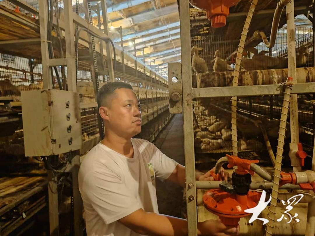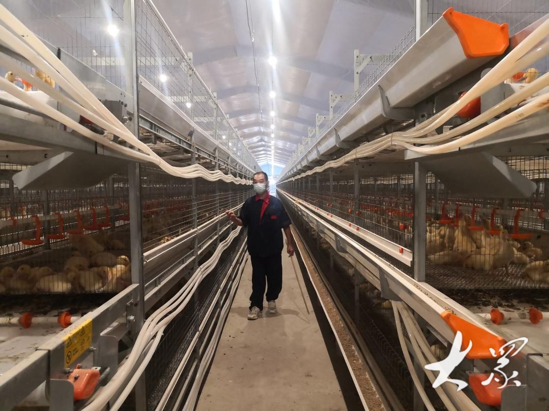 刘子超正在现代化的养殖棚内查看设备运行情况。
