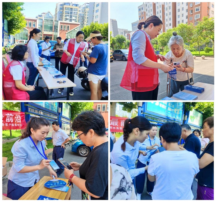 党员志愿者们在小区设立了咨询服务台,与广大社区居民进行零距离、面对面的沟通交流,通过摆放宣传展台、发放线上缴费宣传材料等方式为居民讲解供水知识,解答社区居民日常生活用水中所遇到的用水疑问,征询居民用户对供水服务的意见和建议,并号召居民增强节水意识,避免水资源浪费;同时,现场演示并引导居民如何通过绑定“微信公众号”、登录网上营业厅等线上渠道,轻松实现用水业务的办理,并主动为行动不便的老年人提供代办入户服务,以暖人心田的供水服务切实拉近了与居民用户之间的距离,受到广大居民用户的一致好评。