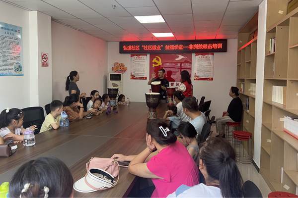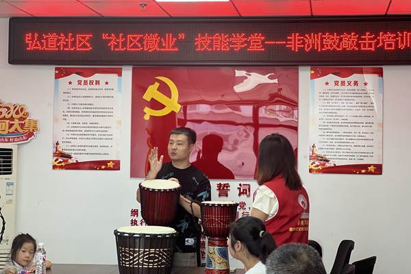 为满足居民多样化的精神文化需求,提升居民就业技能,8月7日上午,滕州市龙泉街道弘道社区新时代文明实践站开展“社区微业”技能学堂——非洲鼓敲击培训活动。