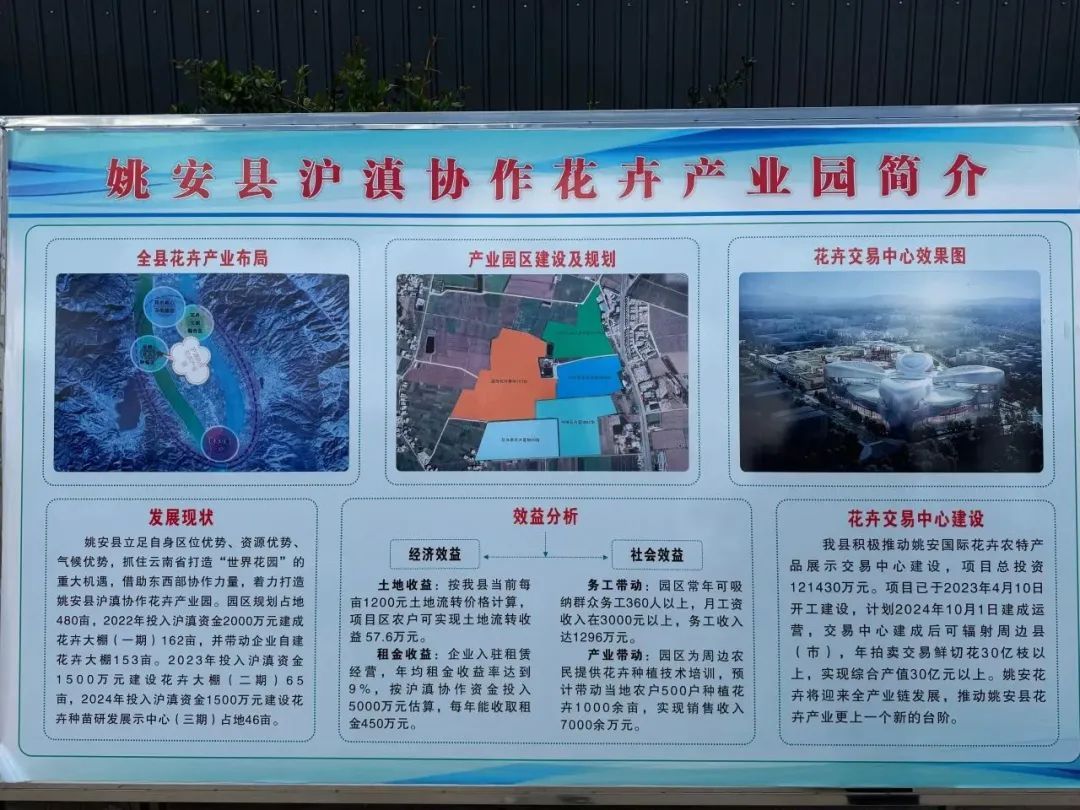 姚安县沪滇协作花卉产业园是上海嘉定与云南楚雄协作的重要成果,沪滇协作连续投入资金支持该项目建设,推动“花当家”“宇锦”“嘉橙”等花卉企业落户。沪滇协作瞄准花卉全产业链布局,形成花卉产业园统一规划建设,持续助力姚安建设国际花卉农特产品展示交易中心等,用鲜花铺就乡村振兴的康庄大道。特色优势产业园建设不仅能带来经济效益,还能创造社会效益,吸纳群众务工的同时帮助当地农户增收。