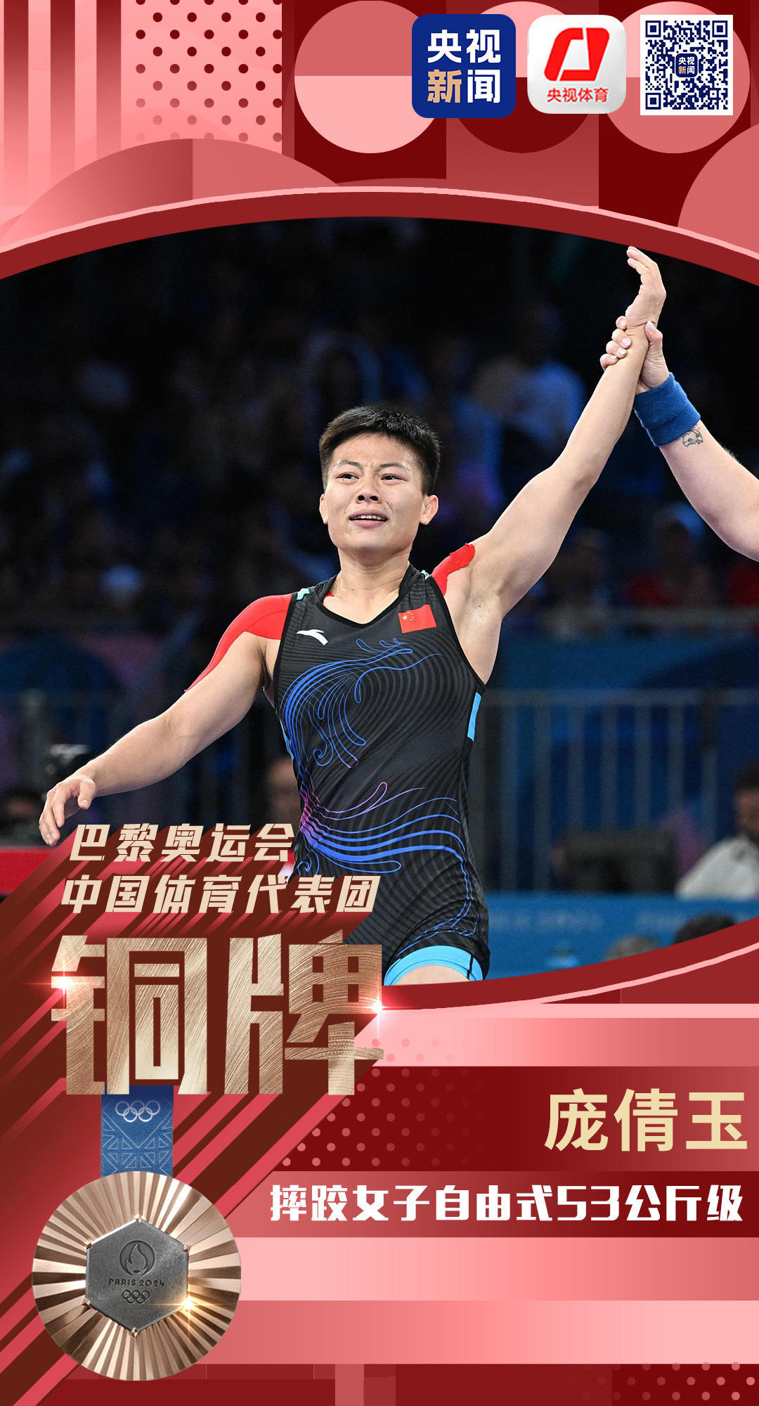 庞倩玉夺得摔跤女子自由式53公斤级铜牌