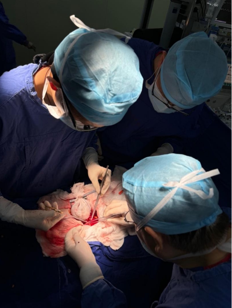 手术的“最后一棒”“自体肾移植”由朱有华教授和张雷副教授带领朱红飞主治医师和邹鲁佳副主任医师完成,两位移植高手娴熟的血管吻合技巧顺利克服了老年高血压患者血管斑块硬化等困难,仅耗时二十分钟就完成了肾动静脉与髂血管吻合的精细操作。肾脏在血流恢复灌注的瞬间泛出鲜红的色泽,随之就看到清亮的尿液从输尿管中流淌出。这一刻,宣告这台特殊的工作台保肾手术获得圆满成功——在完整切除肿瘤的前提下,患者的肾功能得到了最大程度的保护。在麻醉科医师的全程监护管理下,患者安全复苏、平稳返回泌尿外科病房,进入专业细致的优质护理中。