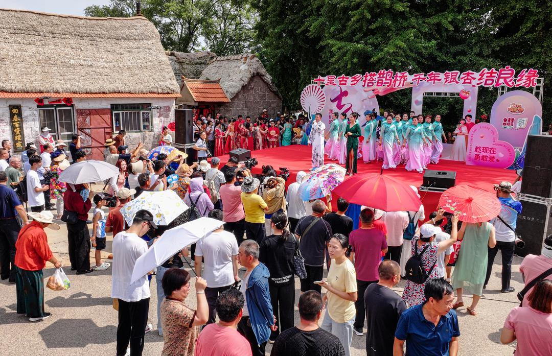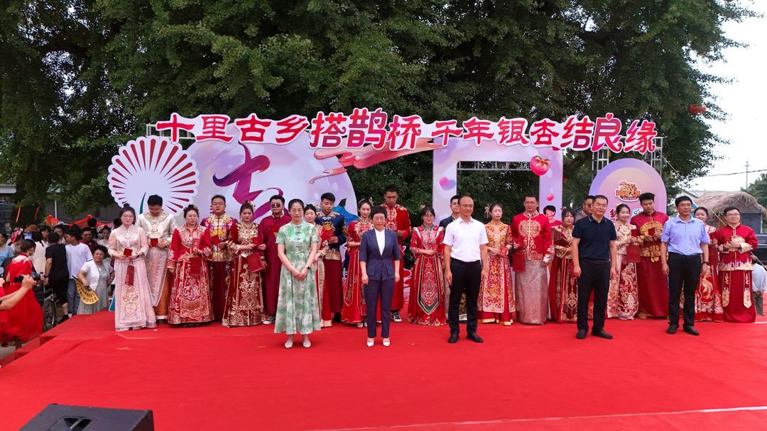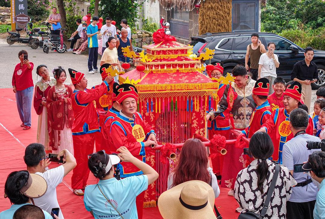 为推动中华传统节日振兴,传承弘扬优秀传统文化精神内涵,荣成市在当日启动“我们的节日·七夕”系列主题文化活动,让新人们体验胶东传统婚俗文化的同时,倡树文明婚俗新风。
