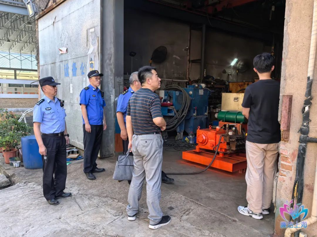 杨浦区纪检监察干部加强监督检查,以有力监督压实安全生产责任、筑牢安全生产防线。图为定海路街道纪检监察干部联合相关执法部门赴辖区内园区厂房开展安全隐患排查整治。(杨浦区纪委监委供 王金祥 摄)