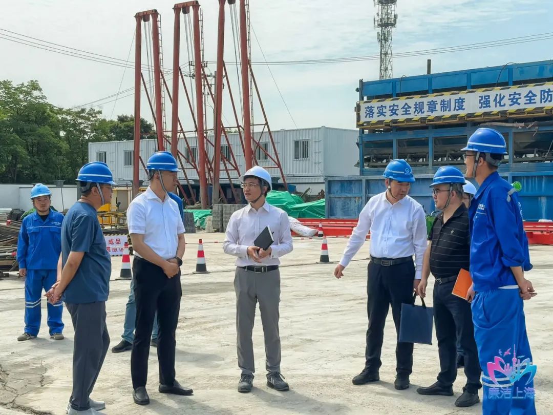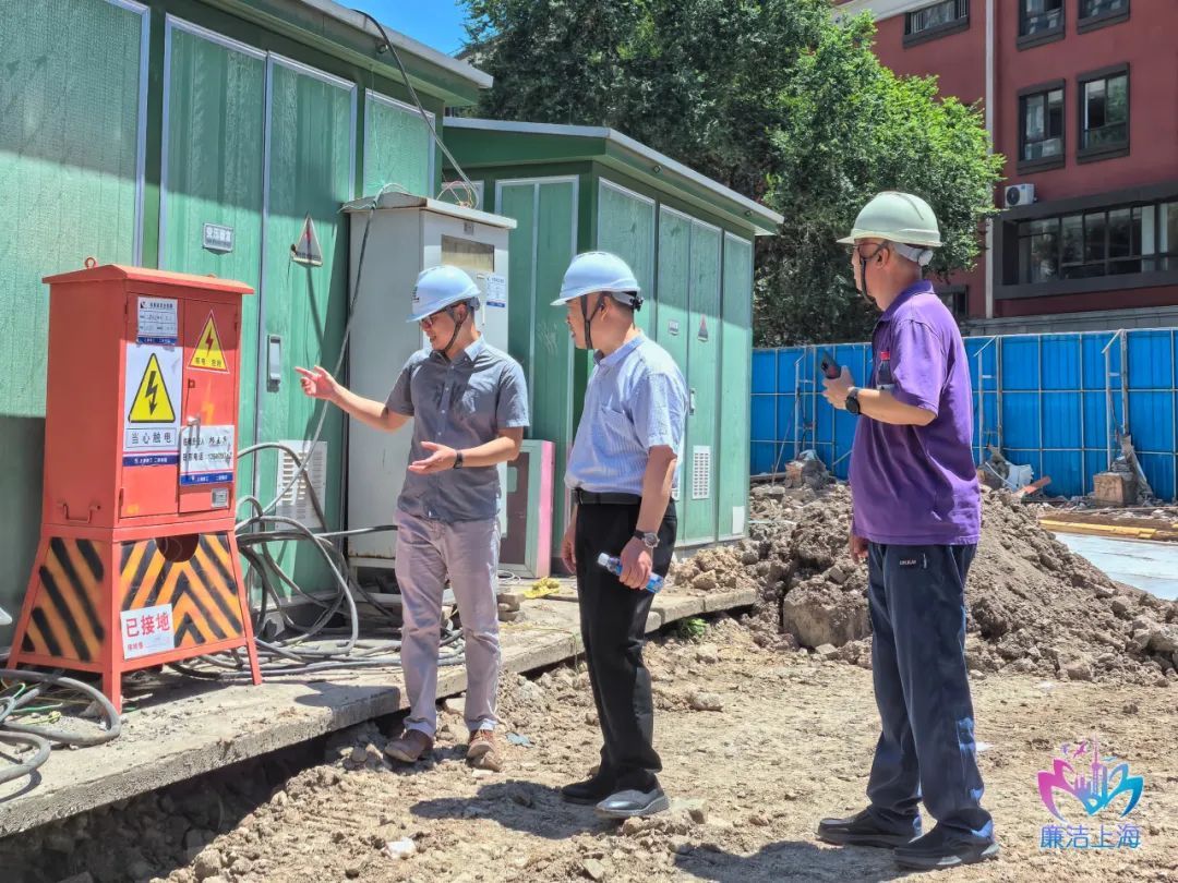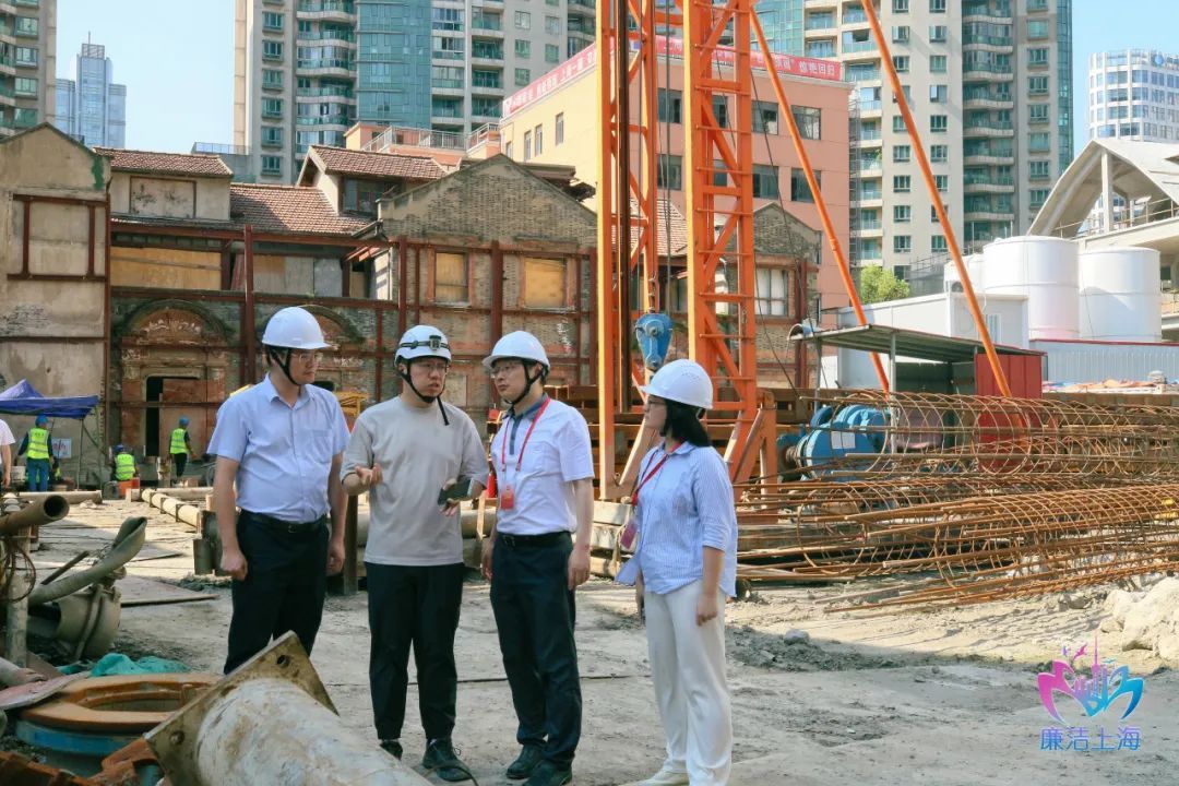 虹口区纪委监委相关纪检监察室联合北外滩集团纪委在北外滩街道77街坊租赁住房项目现场开展检查,详细了解项目进展情况,提醒切实做好防暑降温和安全生产工作。(虹口区纪委监委供 俞琦 摄)