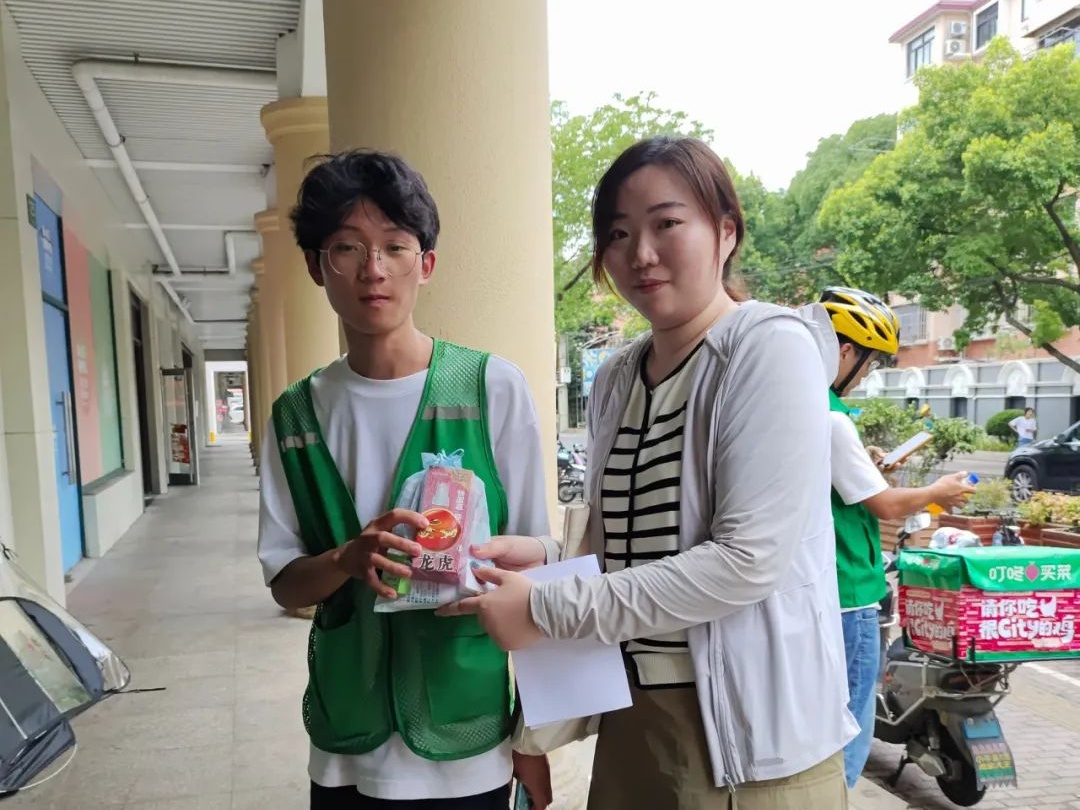 炎炎夏日,正是快递、外卖小哥最忙碌的时候,街区党群服务站贴心为这些城市“摆渡人”送上精心准备的清凉礼包;为有入党意愿的小哥提供党章及相关资料。同时,也借此机会倾听他们的心声和需求,搭建起一座座沟通的桥梁。