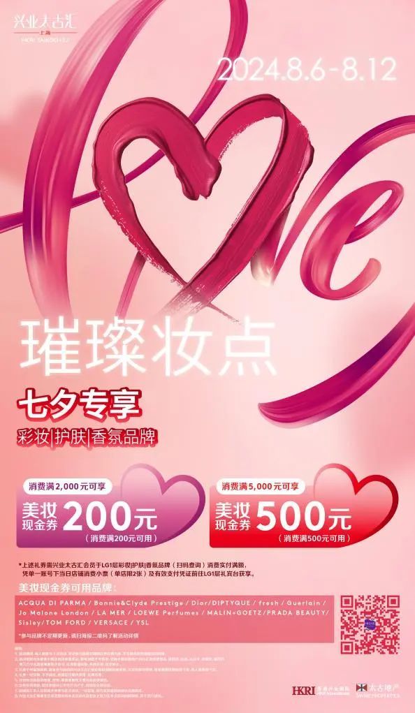 推出“心动七夕 专属浪漫”主题活动,部分美妆品牌活动低至6.6折起。