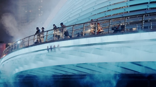 此外,区绿化市容局还在桥体的格栅上和桥身侧面均安装了颗粒粒径为0.15毫米的水喷雾系统,柔和细腻的水雾营造视觉、触觉多重沉浸式的灯光体验。