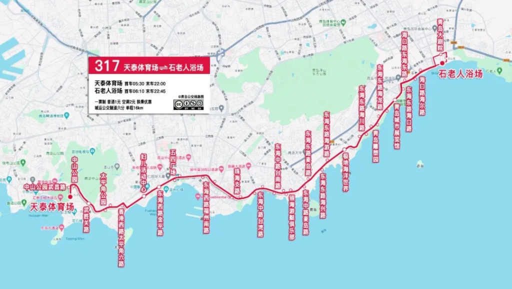 由“天泰体育场—石老人”调整为“天泰体育场—石老人浴场”。