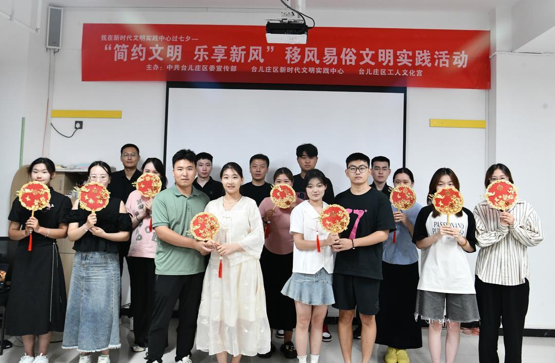 情满七夕,文明相约。为深入推进移风易俗,倡树新时代美德健康生活方式,8月9日,枣庄市台儿庄区开展“我在新时代文明实践中心过七夕”文明实践活动,以“简约文明 乐享新风”为主题,组织20余名青年群众参与其中。