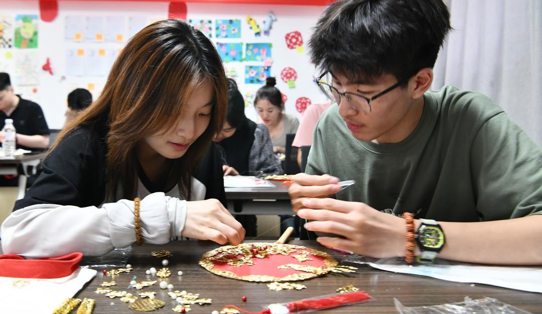 随后,志愿者组织现场群众一起制作手工团扇,详细地介绍手工团扇制作方法和注意事项,并分发事先准备好的扇面、配饰、胶水等材料。大家边制作边交流,兴致勃勃、有条不紊地进行团扇制作。经过设计、粘贴、固定等一系列步骤,一扇扇精美的团扇跃然呈现,现场气氛既浪漫又温馨。