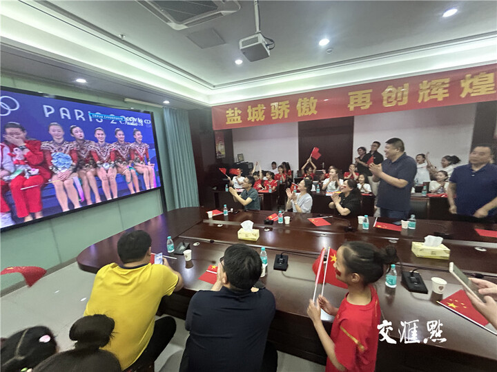 交汇点讯 北京时间8月10日,中国体育又迎来一个历史性的突破。在刚刚结束的2024年巴黎奥运会艺术体操集体全能决赛中,盐城姑娘郝婷和队友郭崎琪、黄张嘉洋、王澜静、丁欣怡发挥出色获得金牌。比赛当晚,盐城市体育局专门组织郝婷家人、启蒙教练和相关人员集中观看了本场比赛的直播,一起见证盐城姑娘郝婷的奥运夺金时刻。