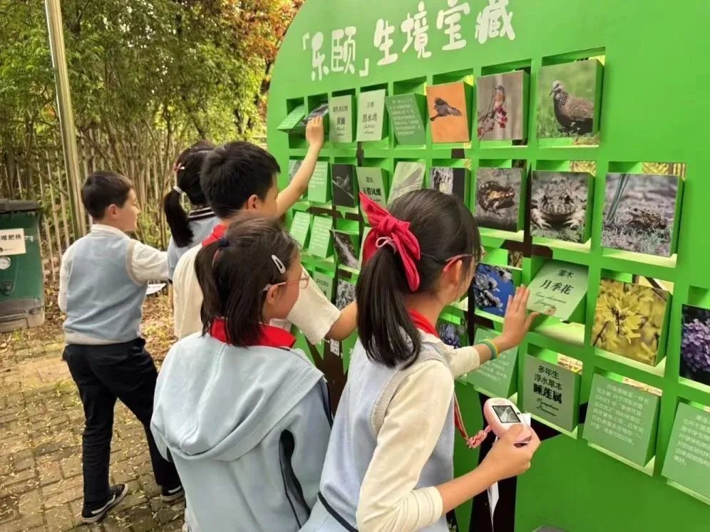 在长宁区,不少生境花园都建设了一批如星空躺床、自然观察窗、自然栈道等设施,为这片空间赋予了自然科普的教育意义。在新泾镇,绿苑小学依托周边乐颐生境花园内丰富的生态学习资源,打造了“优+生境课堂”课程,引导孩子们围绕“土壤实验室”“捕风行动”“光阴客栈”“珍稀动物在哪里”“植物探险家”等不同主题开展学习实践,解码自然、探索奥秘,串起关于生态文明的认知。