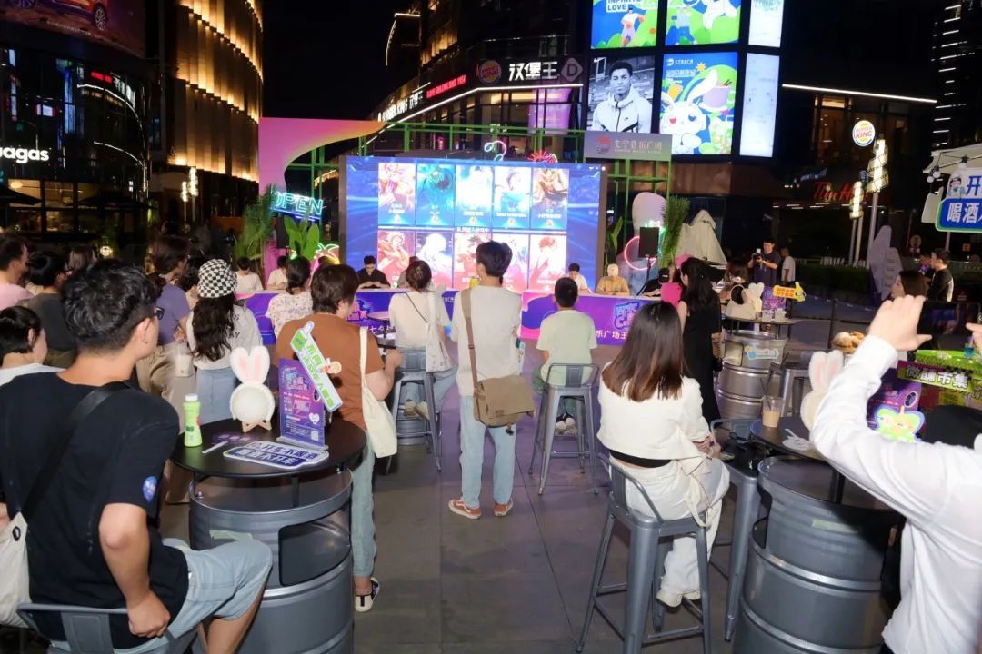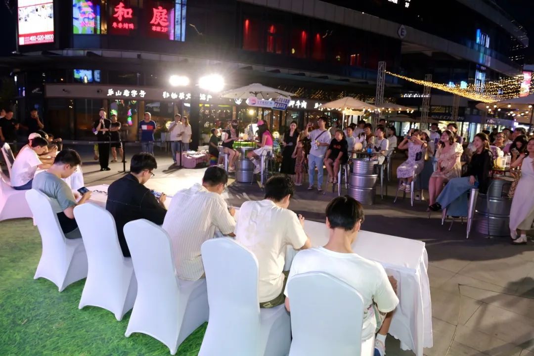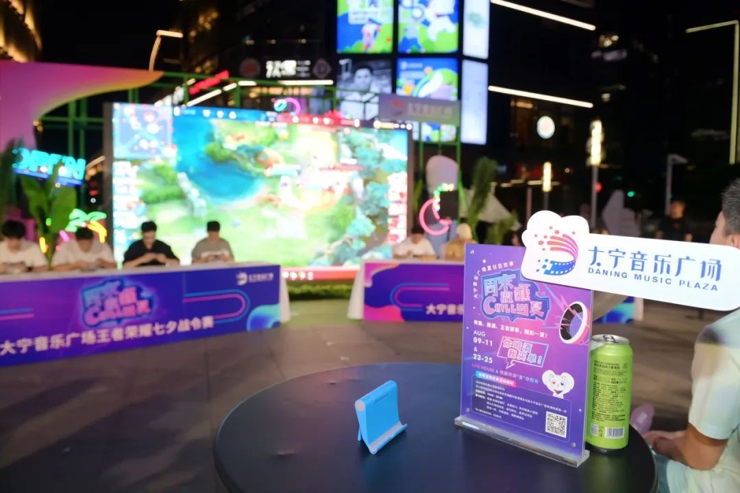 夏夜微醺,少不了热血电竞相伴。当晚,在微醺市集的一侧,“热血集结,七夕战令”王者荣耀国服国标对决赛也同步上演。比赛中,双方选手操作敏捷果断,“火药味”十足,现场氛围一度被比赛推向高潮。