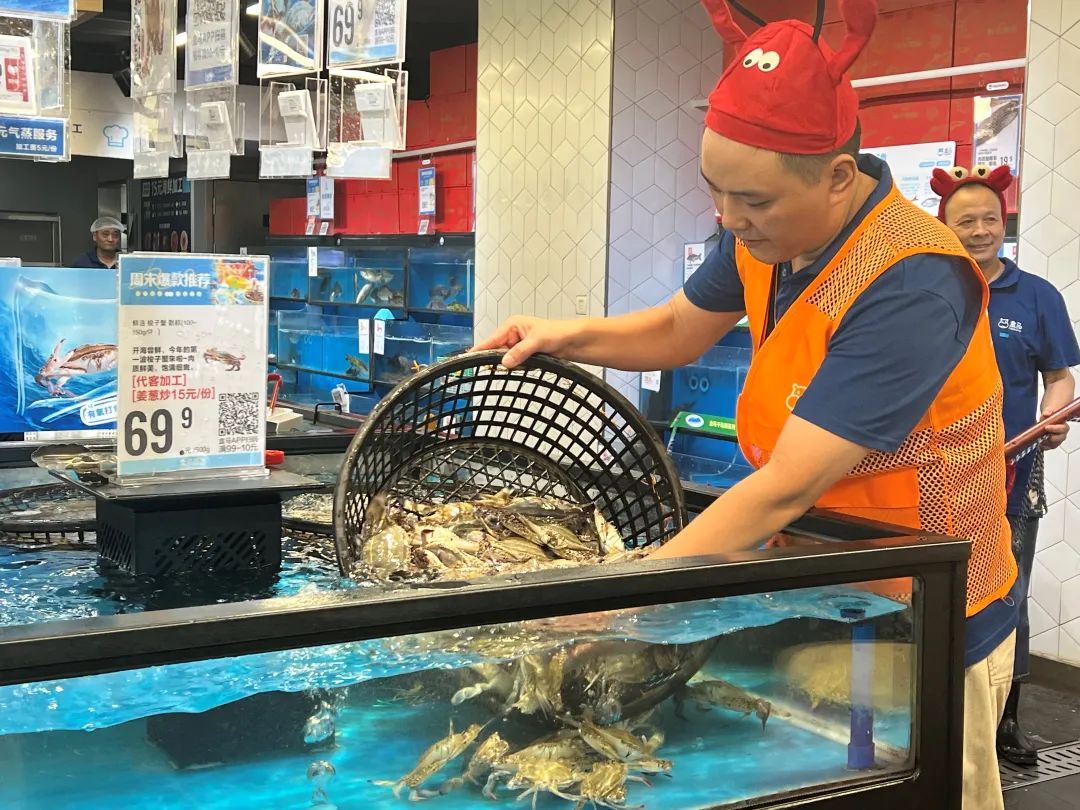 盒马店内梭子蟹摆在醒目位置