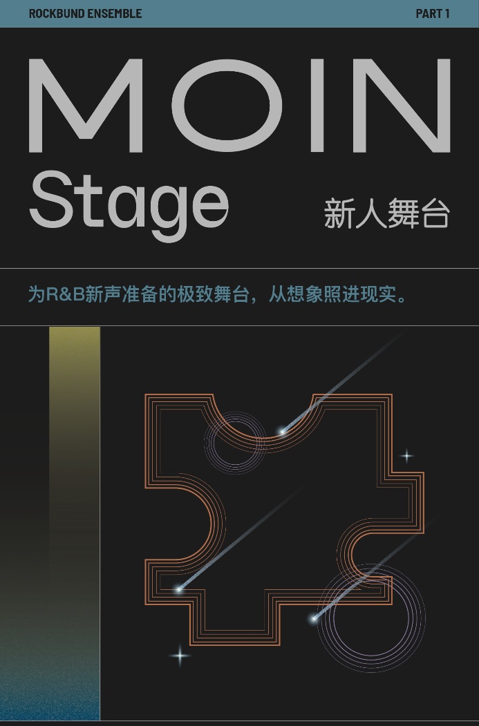 首届主题为「R&B 唱作人」,将为 R&B 新声提供极致的舞台,包括演唱会级别乐队配置、360°四面舞台、全程影像记录和服化造支持,助力华语音乐新人的梦想照进现实。8月17日当天,将有8组充满潜力的 R&B 新星,来到位于中实大楼的舞台,登上 MOIN Stage 与现场观众分享各自的2首原创作品。