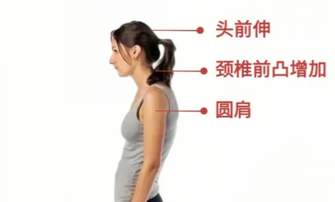 头前伸一出现,圆肩、驼背也不远了,久而久之就形成了医学上常说的上交叉综合症,让你的脖子变短、身高变低。