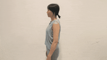 ■双手交叉,放在背后,慢慢向下拽动身体;