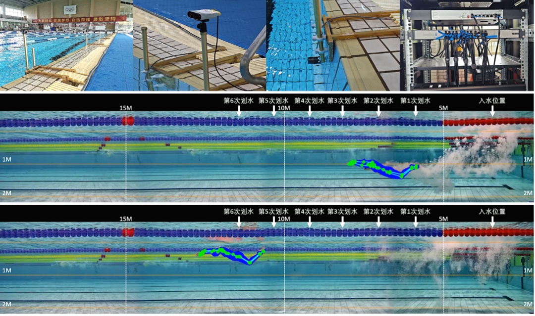 科研团队为国家游泳队打造了水上水下全程50米3D智能采集与AI量化分析系统,多视角智能监测运动员游泳的全过程,包括出发、途中游、转身、冲刺等技术细节。