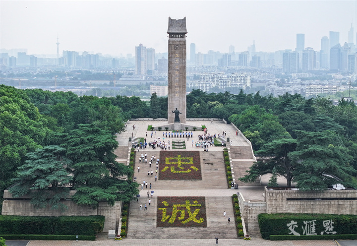 2024年6月26日,南京雨花台烈士陵园的烈士纪念碑前,数万盆黄色和红色鲜花组成巨型“忠诚”字样花坛。新华日报·交汇点记者 邵丹摄