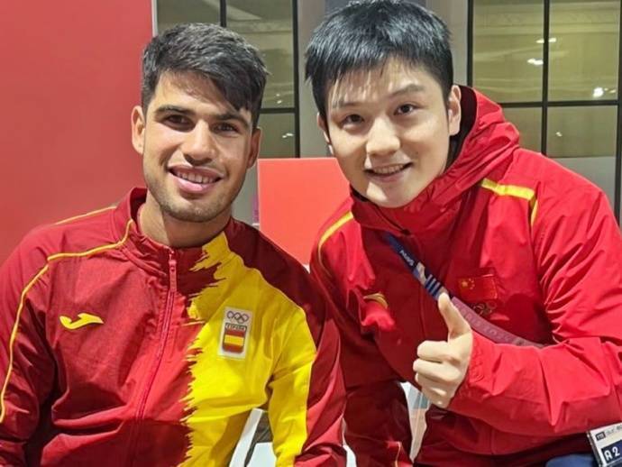 经常听到中国运动员吐槽巴黎奥运村的食堂伙食太差,但从未听到樊振东的抱怨,小胖是妥妥的干饭人,吃嘛嘛香!在奥运村,想偶遇樊振东,食堂是不二之选。羽毛球国手梁伟铿、跳水教练陈若琳、网球名将纳达尔、阿尔卡拉斯都有和樊振东的食堂合影。