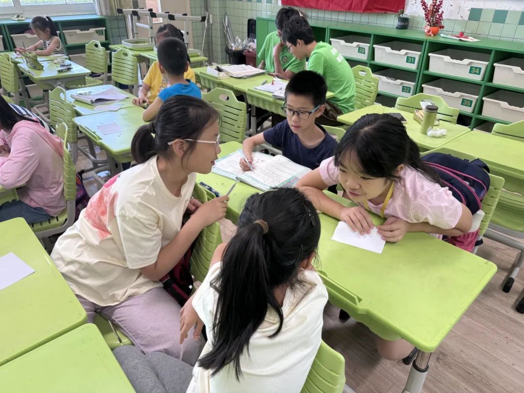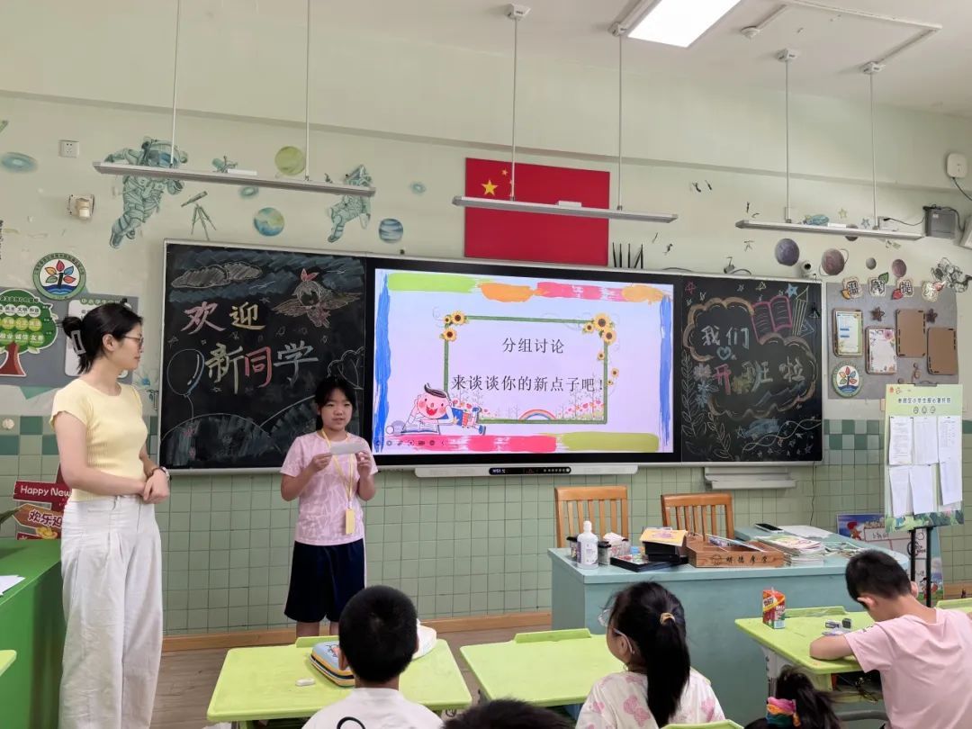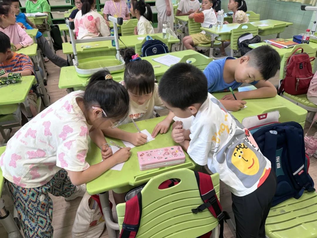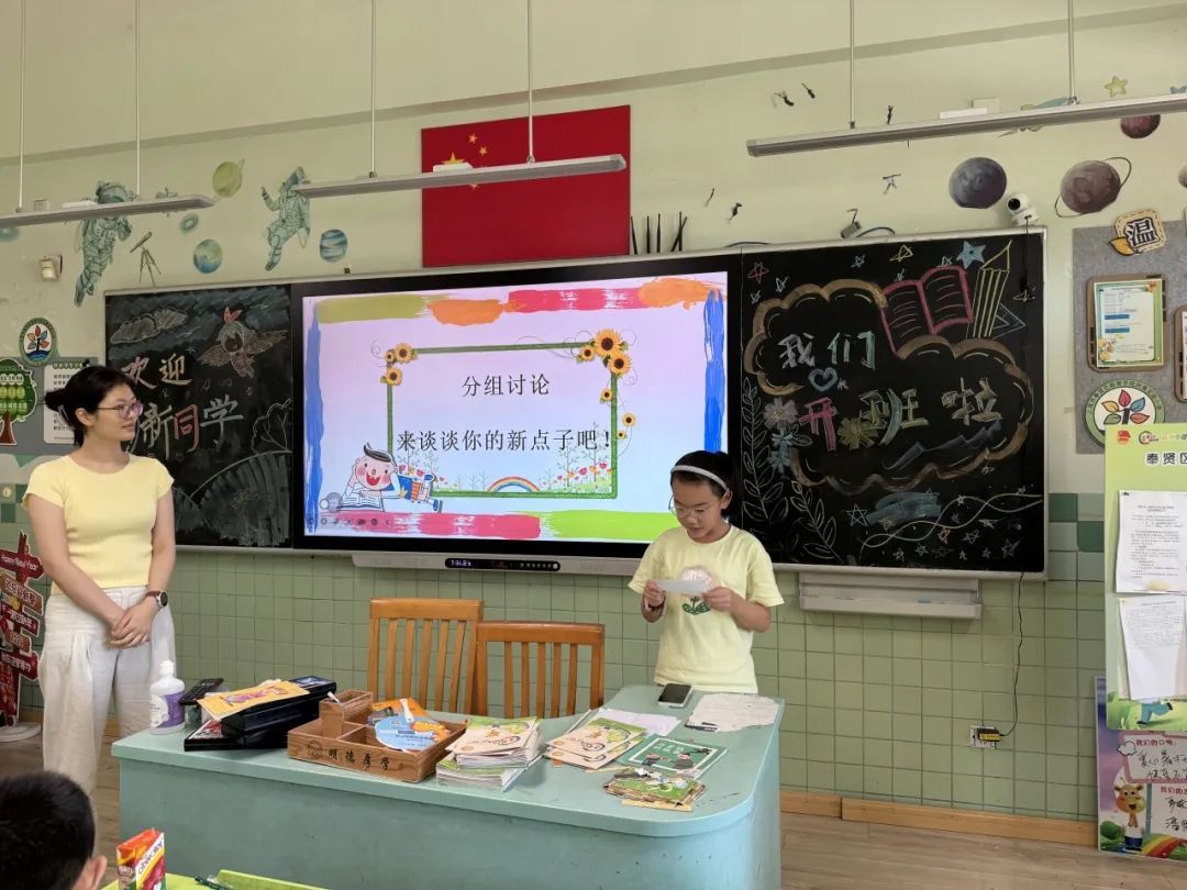 将同学们前后分成一组,开启头脑风暴,集思广益,互相启发。“不要害怕,大胆说出你们的想法!”志愿者老师鼓励孩子们大胆想象,勇敢表达,并及时指导,帮助孩子们把灵感的火苗,汇聚成更加完善和闪亮的新点子。