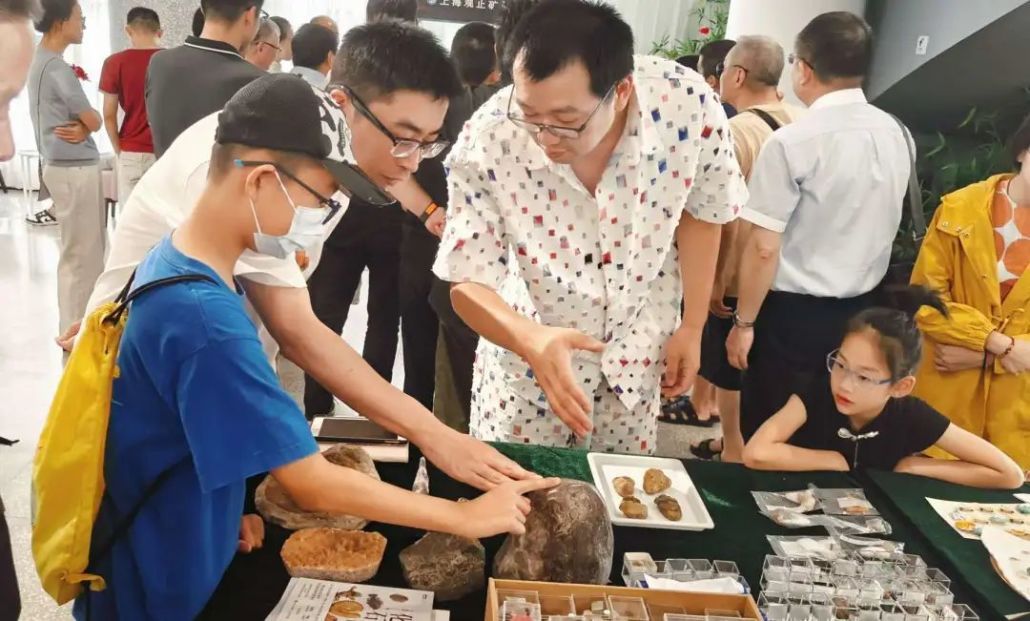 “矿物小摊主”文化市集也热闹非凡,摊主们展示着各类矿化陨奇宝及古今贝类标本,有的晶莹剔透、有的光泽熠熠、有的形态奇特,大家在观察和触摸中,感受到了矿石的美感和特性,提升了欣赏能力,也了解到这些矿石不仅是自然界的瑰宝,也是人类社会发展的重要资源。