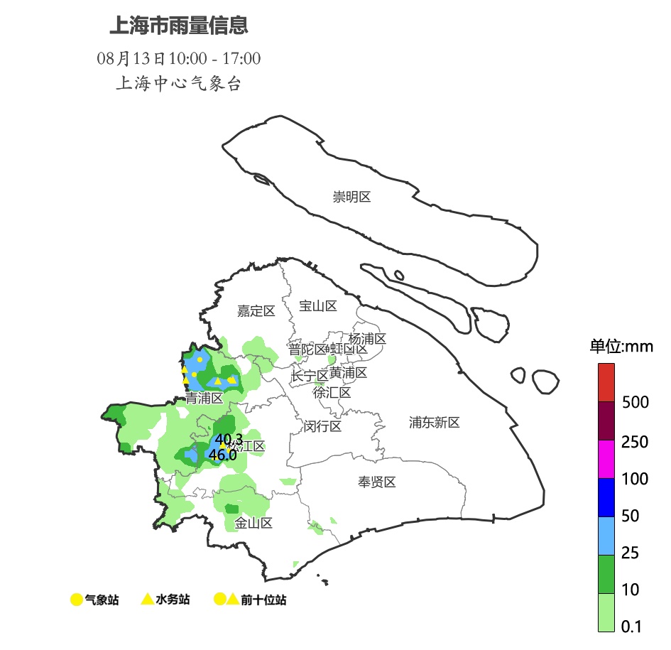 由于处在副热带高压边缘,浙北和苏南等地强对流天气“遍地开花”。今天中午起本市金山、松江、青浦、嘉定等地也出现雷阵雨,伴有短时强降水和雷雨大风。统计显示松江佘山镇降雨最大,达46.0毫米,松江小昆山镇阵风7级为最大。今天上半夜之前西部地区仍有短时阵雨。