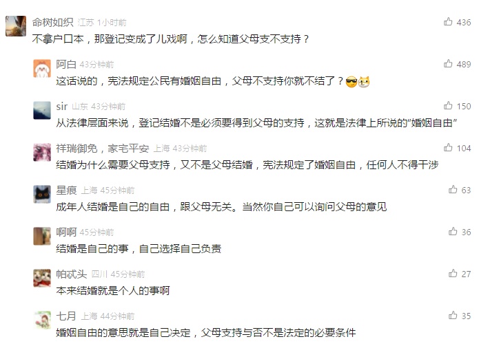 此前有网民2023年6月在民政部网站留言称,现在婚姻登记必须提供户口簿不合理,身份证与户口簿本质上是一样的,都由公安机构颁发,具有同等效力。为什么提供了身份证还必须提供户口簿?很多年轻人往往因为父母粗暴干涉而拿不出户口簿,这与宪法规定的“结婚自由”原则相违背,建议对此规定进行修订。
