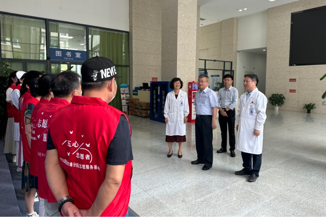 张权权一行首先来到复旦大学附属中山医院青浦分院。在医院内,他详细询问志愿者们的工作情况,并重点了解医院“五心”志愿服务推进情况,对中山医院青浦分院将 “五心”服务理念融入各类志愿服务中,形成有医院特色的志愿服务活动表示肯定。据了解,中山医院青浦分院现有注册志愿者2000余人,年均服务患者10余万人次、服务社会人群30余万人次。张权权高度赞扬志愿者们的奉献精神和敬业精神,并嘱咐大家要注意防暑降温,保重身体,确保在为患者服务的同时,也能保持自身的身体健康。