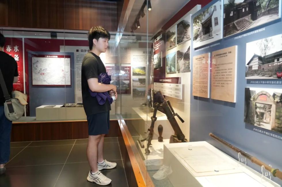四渡赤水是长征史上最光彩神奇的篇章,是中国工农红军战争史上以少胜多、变被动为主动的光辉战例。观众可从特展中看到,泸州地处四川东南,是川、渝、滇、黔交界处的战略要地,是四渡赤水战役的主战场。中央红军在泸州战斗54天,足迹遍布80多个场镇,召开了著名的“鸡鸣三省”会议、白沙会议,成立了川南游击纵队,1300余名泸州青年加入红军,留下了丰富的红色遗迹,书写了浓墨重彩的红色篇章。