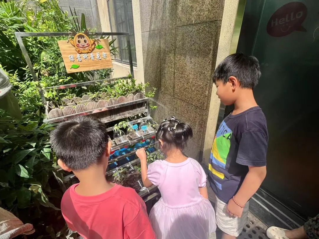 为培养孩子们的责任感与参与意识,汇龙居民区特意设立了绿意科普花架——蔬菜小苗认领环节,孩子们在认领牌上郑重其事地写下自己的名字。