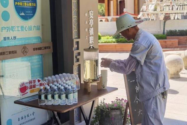邓师傅拿了盒冰淇淋坐在站点内休息,“天气太热了,能在站点喝口水歇个脚很舒服,现在还能吃免费冰淇淋,工作起来心情都好了。”